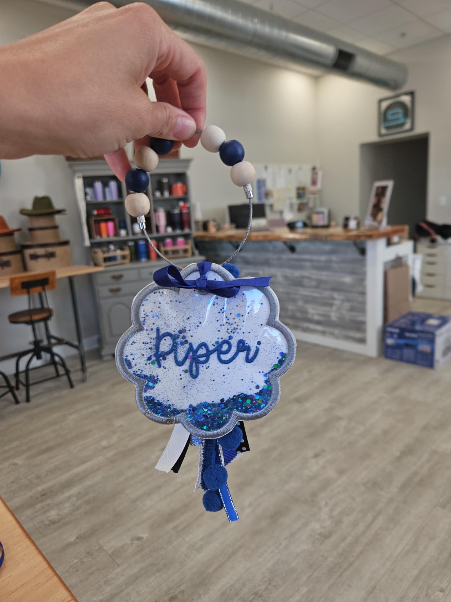 Fully customizable. Please put name, and color scheme, or school in notes at the order checkout. Tags are about 4.5 inches and ribbons then hang out below. Tag is about 5in round with wooden beads to coordinate colors. Shapes can be requested as well.
